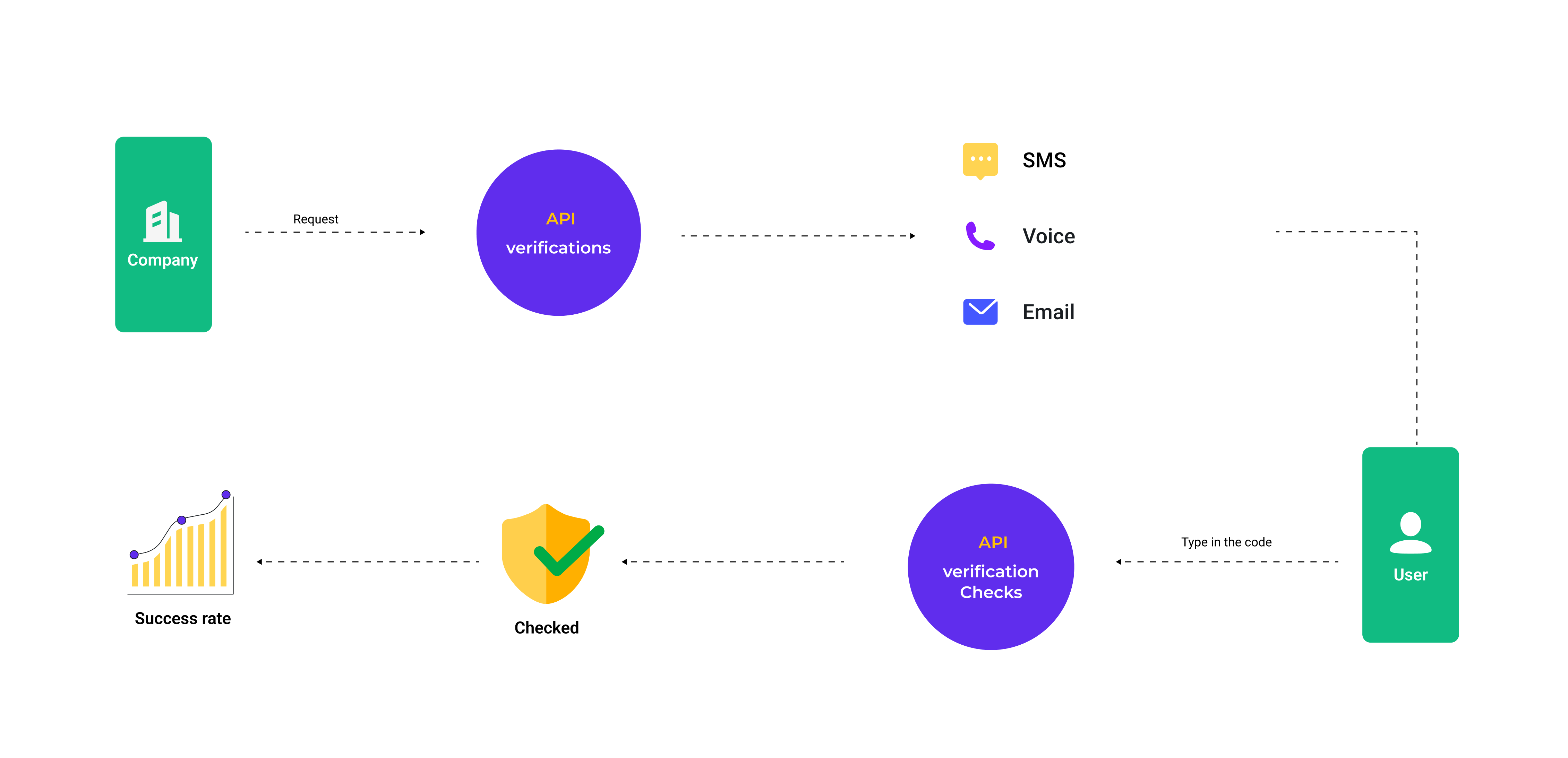 Quickly integrate a ready-made solution to verify user identities globally through channels such as SMS, Email, Voice, etc., by sending one-time passwords (OTP).